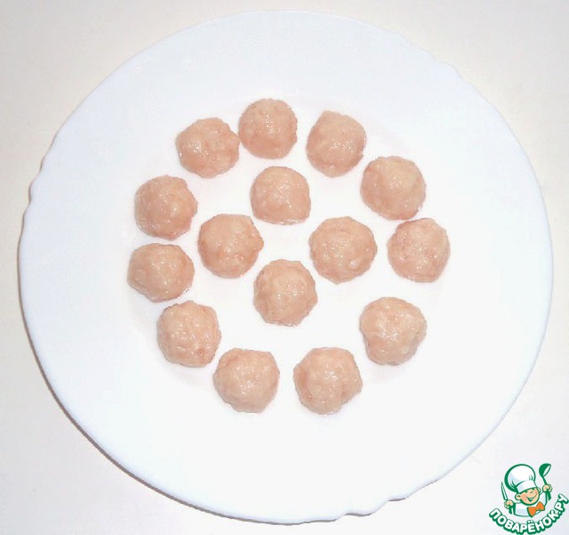 Куриное филе пропустить через мясорубку и приготовить фрикадельки.