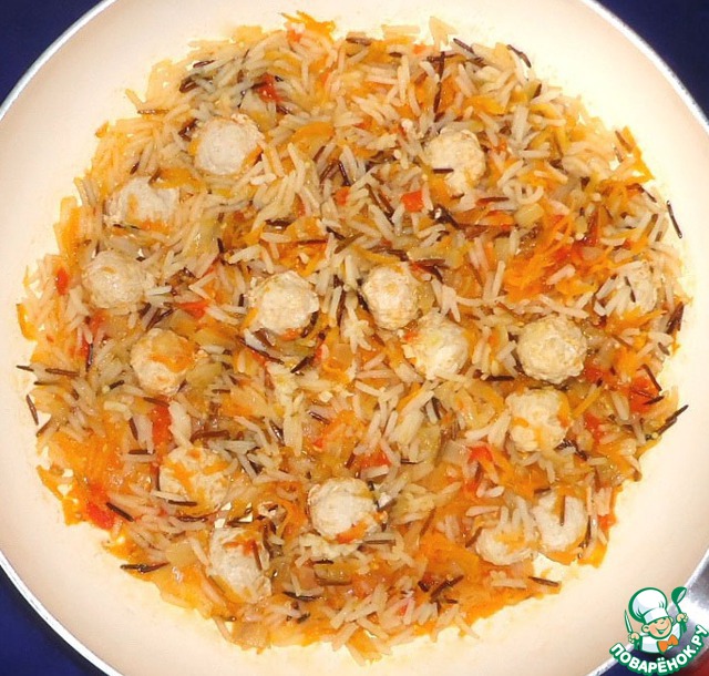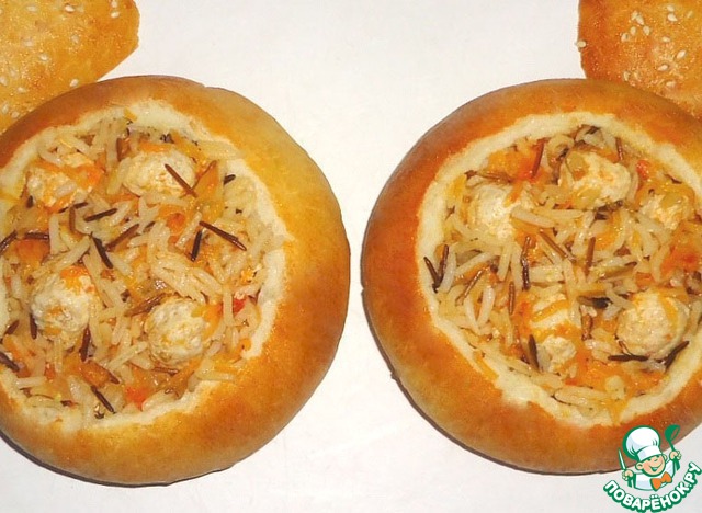 | Очень вкусный, сытный плов из риса Басмати MIX с куриными фрикадельками в булочках. Такой плов можно подать на обед, а также удобно взять с собой. |