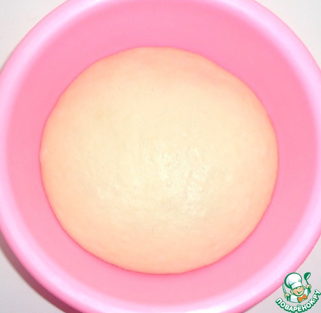 Сначала приготовим тесто для булочек, для этого в тёплом молоке нужно смешать дрожжи с сахаром и оставить на 5 минут, затем добавить яйцо, растительное масло, соль и муку. Тесто положить в глубокую чашку и поставить в тёплое место на 40-50 минут.