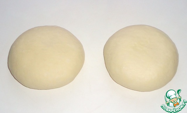 Тесто нужно разделить на 2 равные части, сформировать лепёшки, оставить на 15 минут.