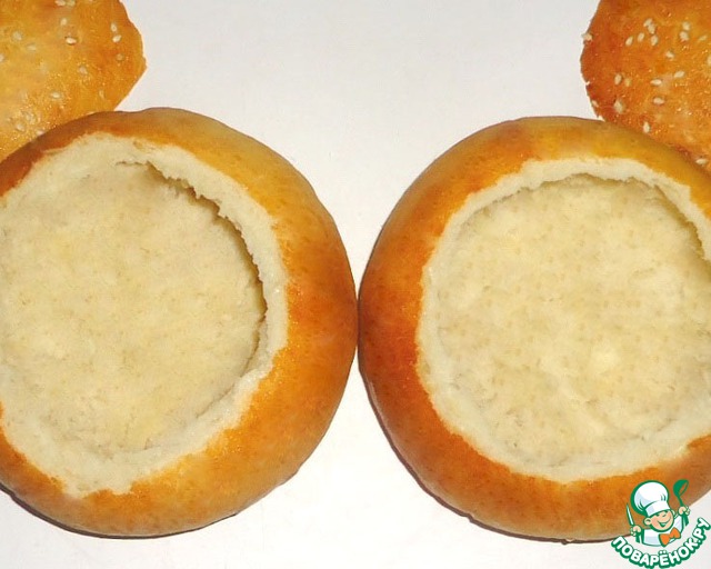 Готовые булочки остудить, срезать верхушку и вынуть мякиш.