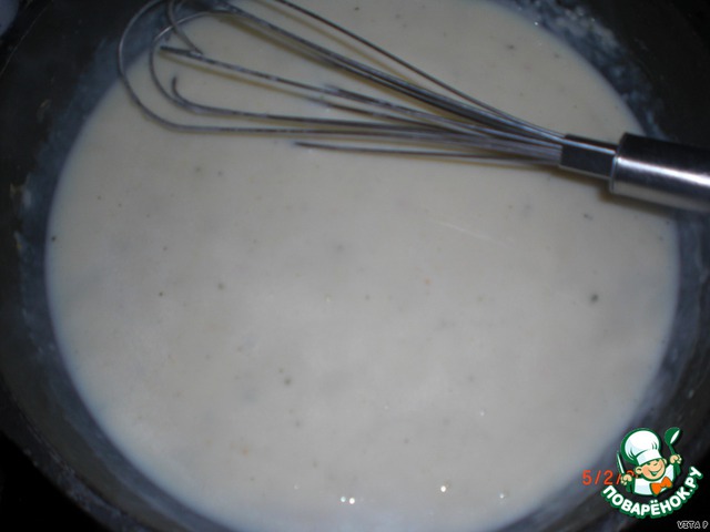Можно использовать готовый соус бешамель, а можно приготовить самому - для этого масло растопить на сковороде, добавить муку, быстро размешать и понемногу добавлять молоко, всё время помешивая, добавить по чуть-чуть кипячённую воду (желательно добавить кубик бульона со вкусом креветок), очень тщательно всё перемешать, посолить, поперчить и довести до небольшого загустения.