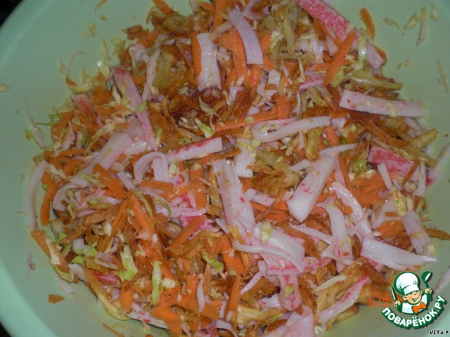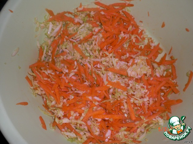 Морковь очистить и натереть на крупной тёрке, у меня не хватило немножко и я добавила капусту.