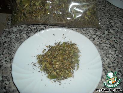 В большой чашке заливаем крутым кипятком травки и даем настояться минут 20 (у меня был зверобой, душица и перечная мята).