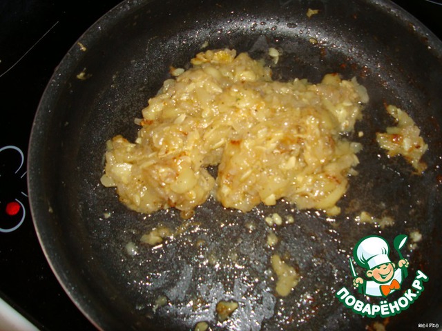 Затем добавить порезанную мякоть кабачков и жарить. Посолить и поперчить.
