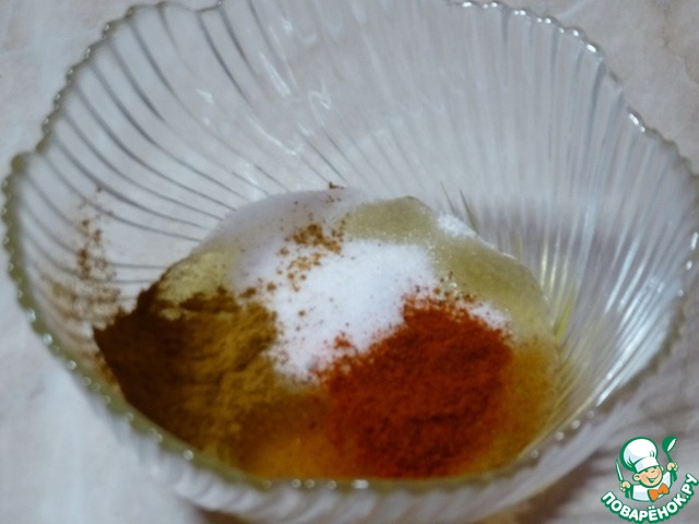 Из 1 мандарина выжать сок. Смешиваем мед, соевый соус, сок 1 мандарина, паприку, корицу, соль в мисочке. Тщательно намазываем гуся этой смесью и маринуем сутки.