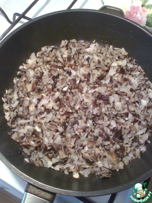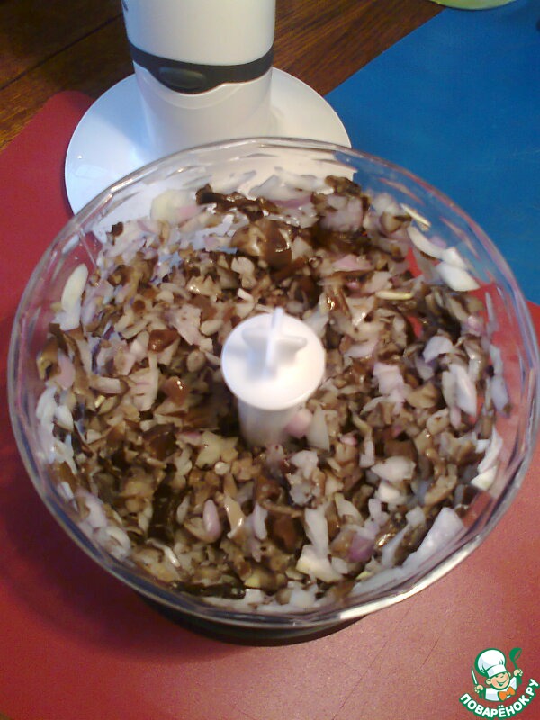Грибы и лук измельчаем в блендере (не очень мелко).