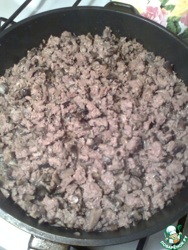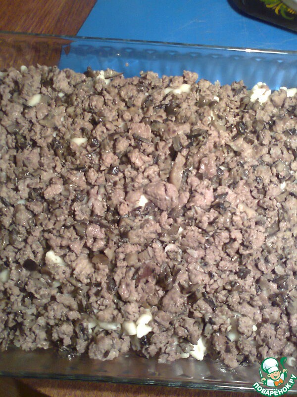 Сверху выкладываем фарш с грибами.