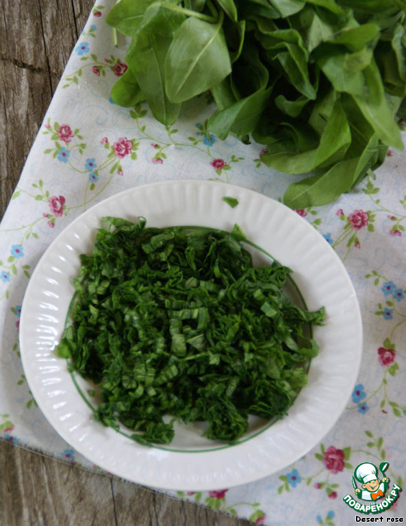 Я взяла вместо шпината щавель. И просто мелко его нарезала.