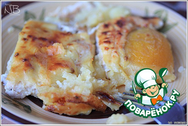 Картофельная запеканка с курицей и абрикосами