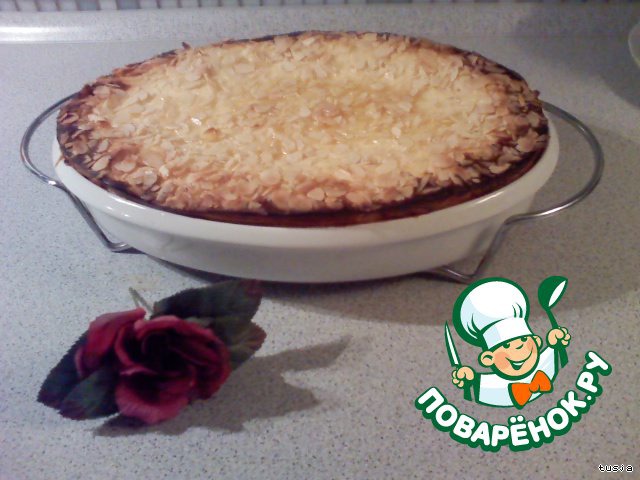 Сверху посыпать миндалeм и положить кусочки маргарина.