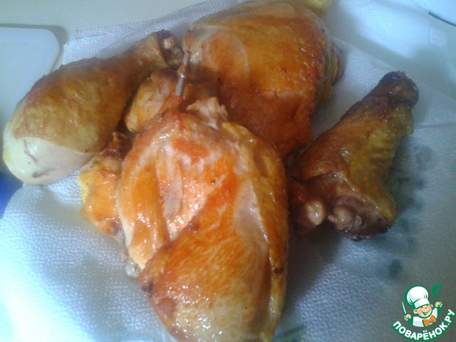 Слегка обжаренного петуха выкладываем на бумажную салфетку, чтобы впитался лишний жир.