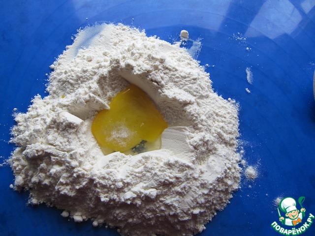 Для приготовления теста нужны определённые навыки, потому что тесто получается не очень эластичное, что и отличает его от пельменного теста. Легче замешивать его небольшими порциями: по 2 яйца на 200 гр муки, и раскатывать его большой скалкой. Этого теста хватает обычно на троих.