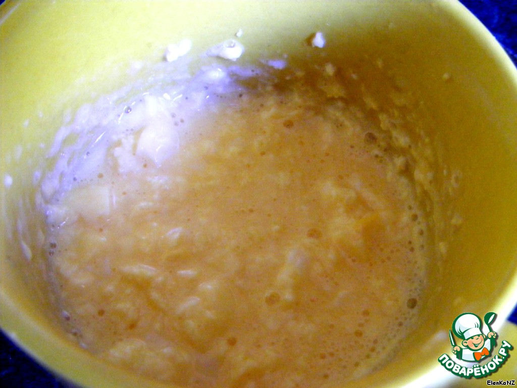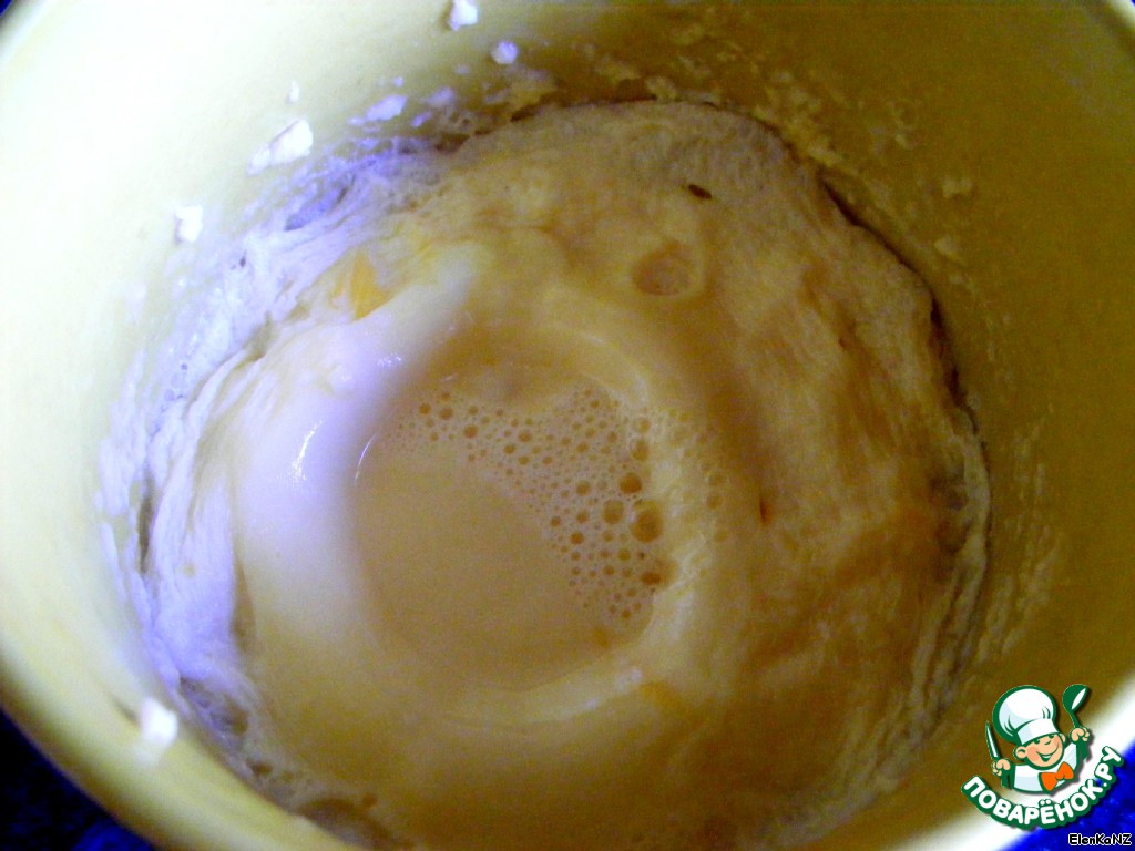 Через 45 секунд вынимаем и еще раз взбиваем уже полуготовую "яичницу" и опять отправляем на 45-60 секунд в микроволновку.