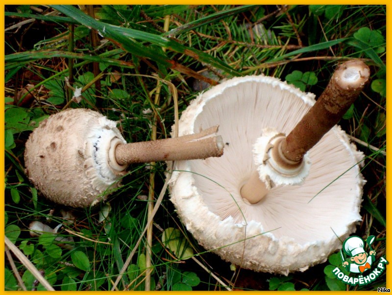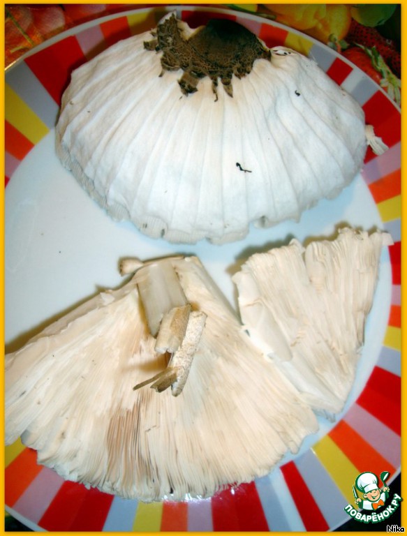 Несколько лет тому назад я ездила в лес собирать травы. Выйдя из леса, увидела интересные грибы. Шляпки у грибов были большого размера и раскрытые полностью. Я подумала, что это мухомор-альбинос... Со мной была местная жительница и она поведала о том, что это не мухоморы, а очень вкусные и съедобные грибы. Мне не хотелось их брать, но женщина настояла на том, чтобы я их попробовала приготовить... И правда, грибы оказались очень вкусными. Не знающему, что он ест, даже не понятно, гриб это в кляре или мясо...