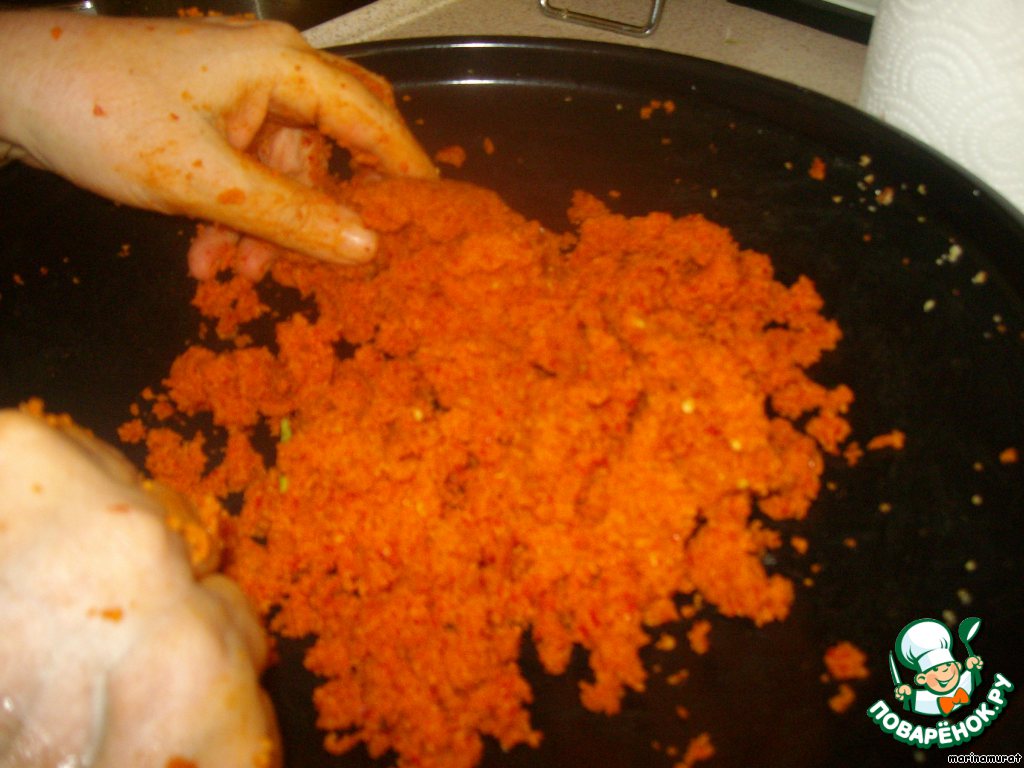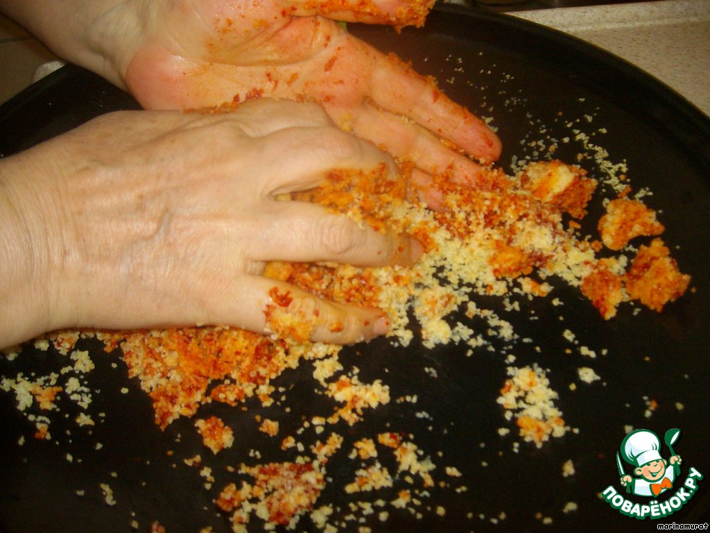 Добавляем пасту и снова руками все это перемешиваем, сдавливаем в руке где-то минутку.