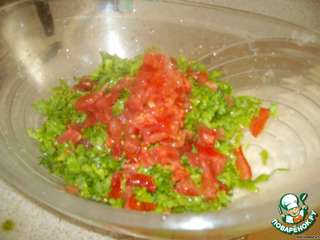 Теперь берем наши овощи и режем как можно мельче. Только помидорки можете покрупнее порезать.