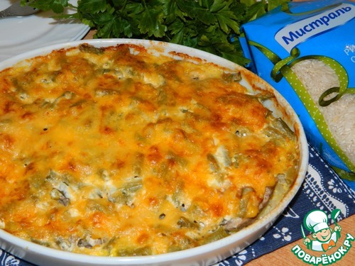 В смазанную форму выложить сваренный рис (я использовала Мистраль).