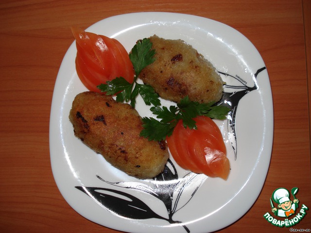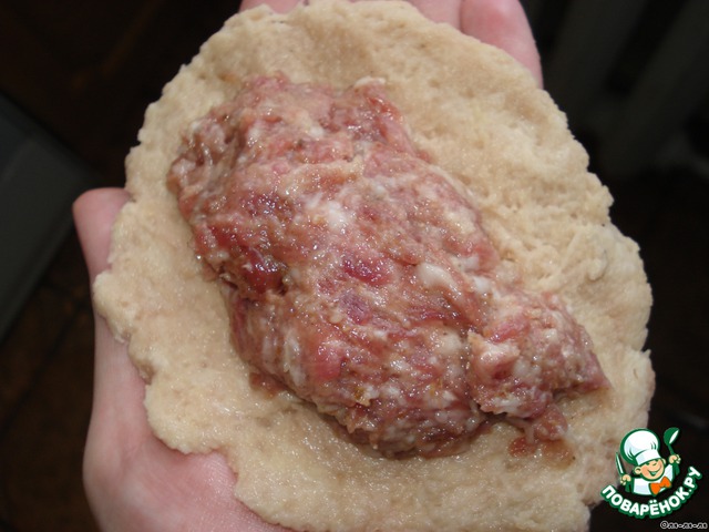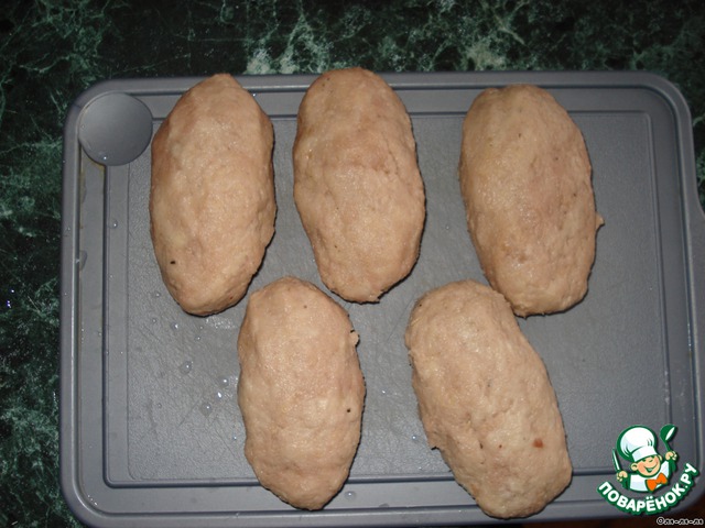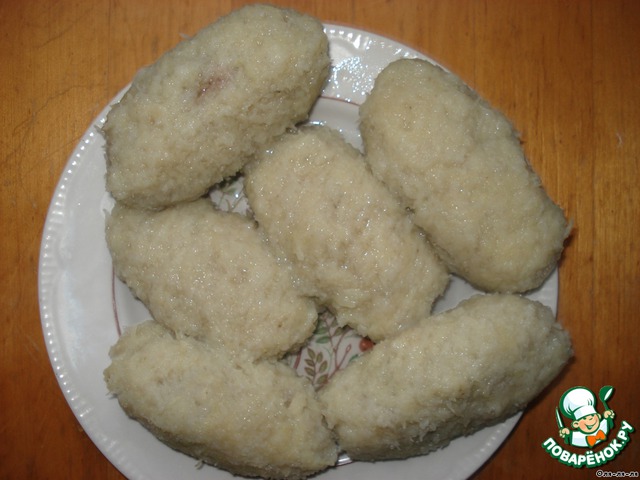 из картофельной массы делаем лепёшку, в серединку кладём фарш, формируем цепелинчики.