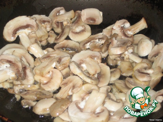 Гречневую крупу отварить в соотношении 2 части воды и 1 часть гречки. Пока она варится, режем шампиньоны и обжариваем на растительном масле с добавлением сливочного (мне просто такое сочетание масел больше нравится).