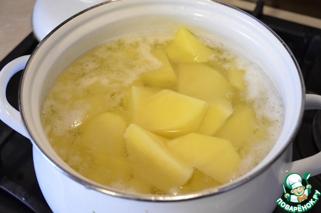 Молодой картофель почистить и отварить. Так же посолить по вкусу