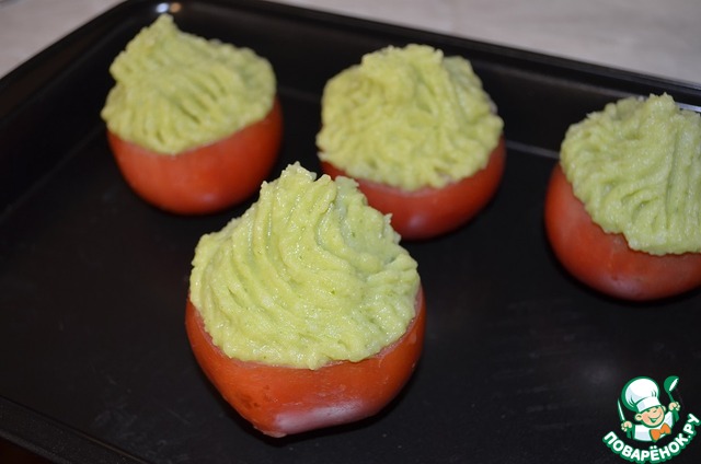 Запеченный помидор с грибами под картофельной шапкой
