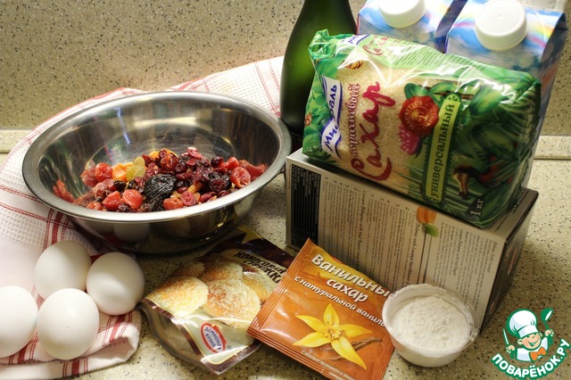 Продукты. Для начинки я выбрала: чернослив, курагу, изюм черный и светлый, вяленую клюкву и вишню. Сухофрукты тщательно вымыла.