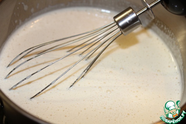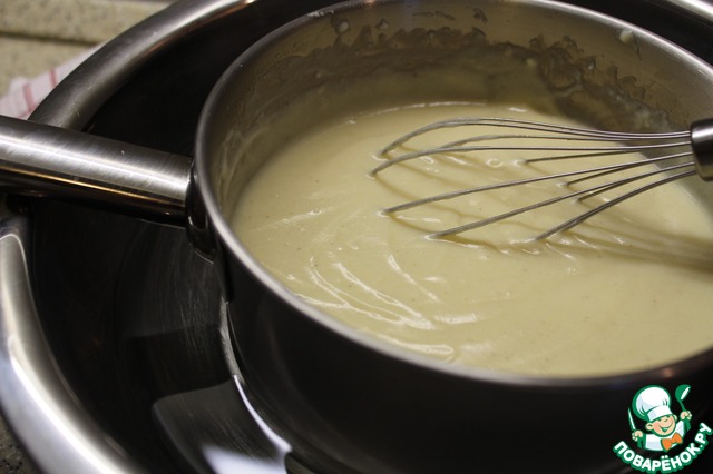 Яично-сахарную смесь перелила в кастрюлю с толстым дном.