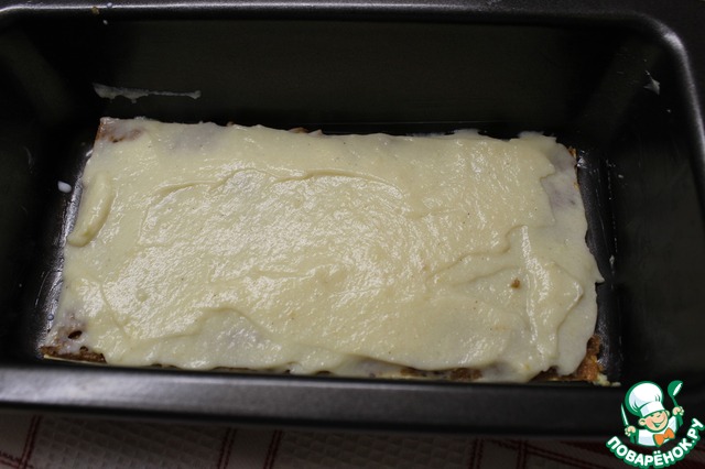 Для удобства просто брала лист лазаньи в руку, поливала молоком, затем ровным слоем намазывала начинку.