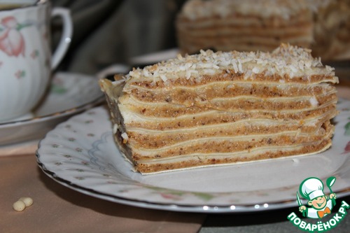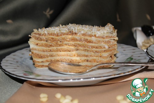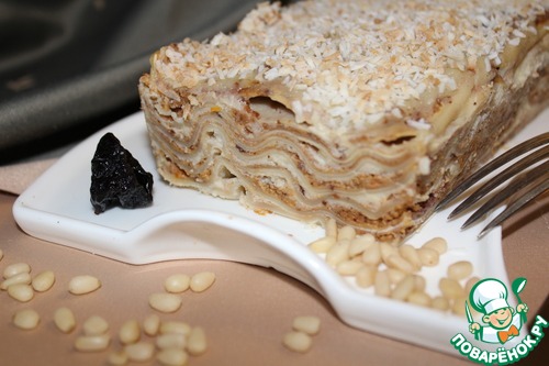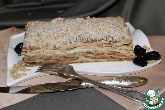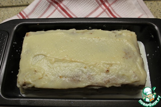 Укладывала промазанные листы один на другой, немного прижимая один к другому. Все надо делать аккуратно, чтобы не сломать листы и не выдавить начинку.