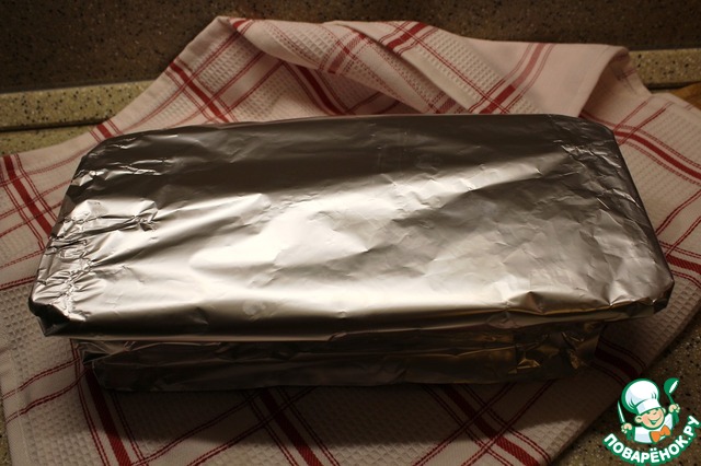 Сверху емкость для запекания плотно закрыла фольгой и выпекала в предварительно нагретой до 180 град. духовке 25 минут.