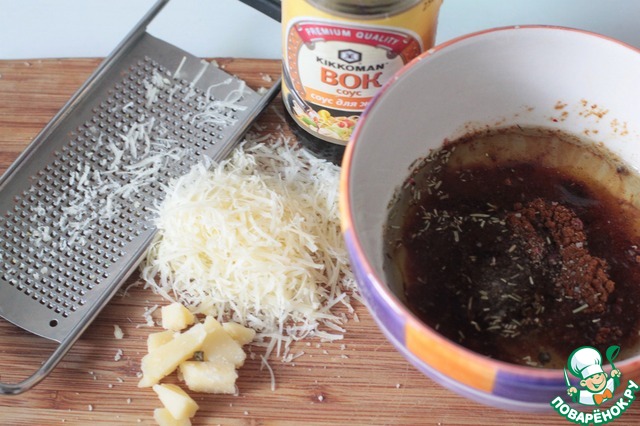 Приготовим панировку для капусты: соединим белок, соус вок, паприку и пармезан.