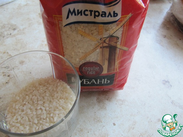 Для приготовления этого блюда я использовала рис Кубань от Мистраль. Его нужно отварить до полуготовности.