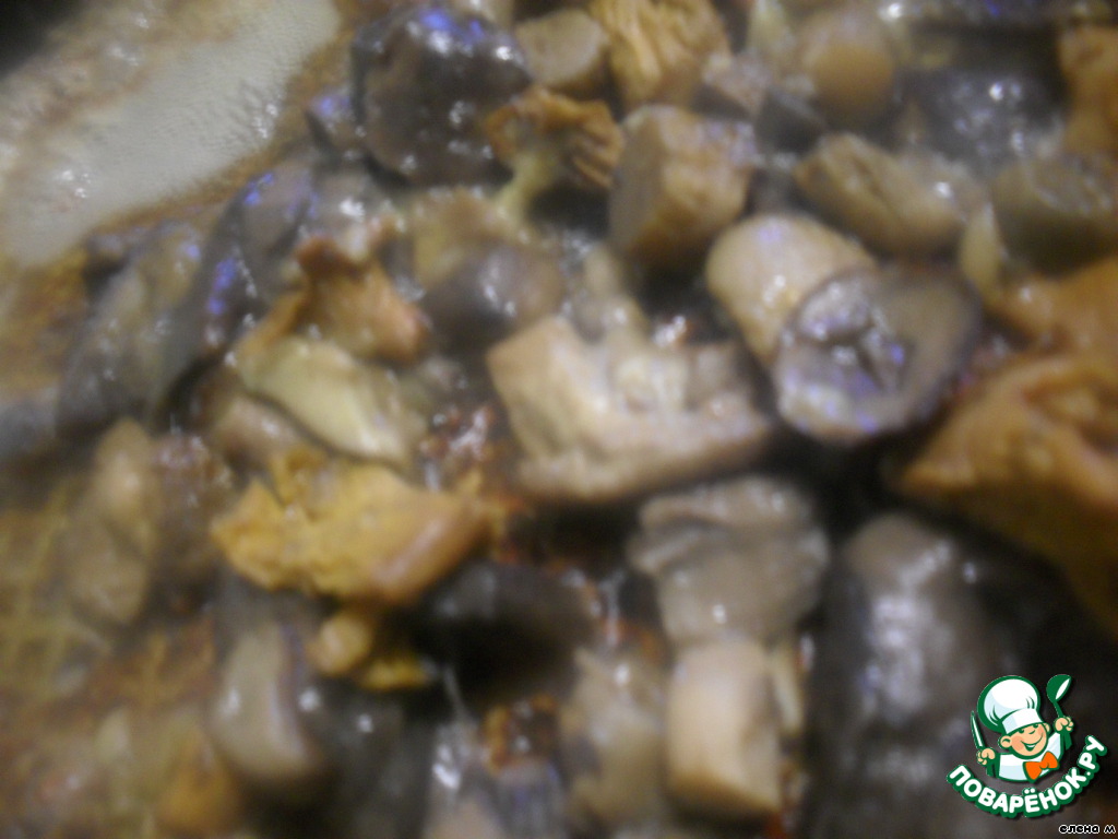 Грибы, у меня ассорти из подберезовиков, белых и лисичек, обжариваем на сливочном масле.