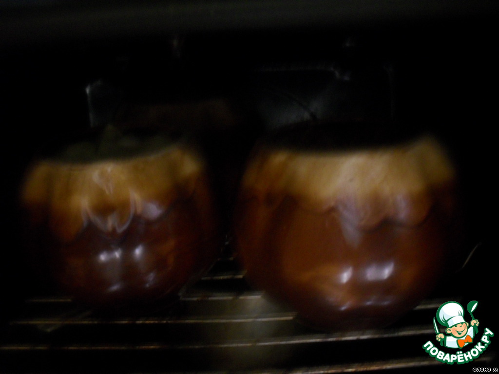 Ставим в разогретую духовку, запекаем 40 минут при температуре 180 градусов. Выключаем духовку, оставляем горшочки в духовке на 25-30 минут, чтобы настоялись.