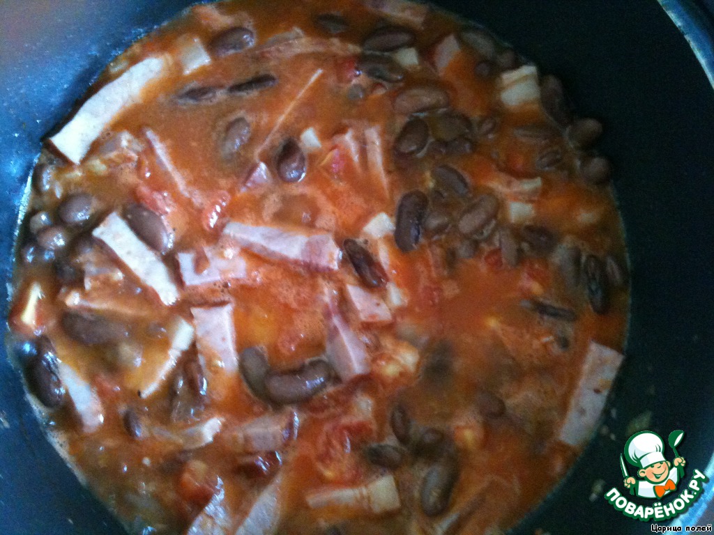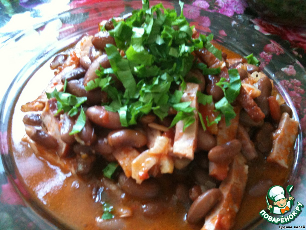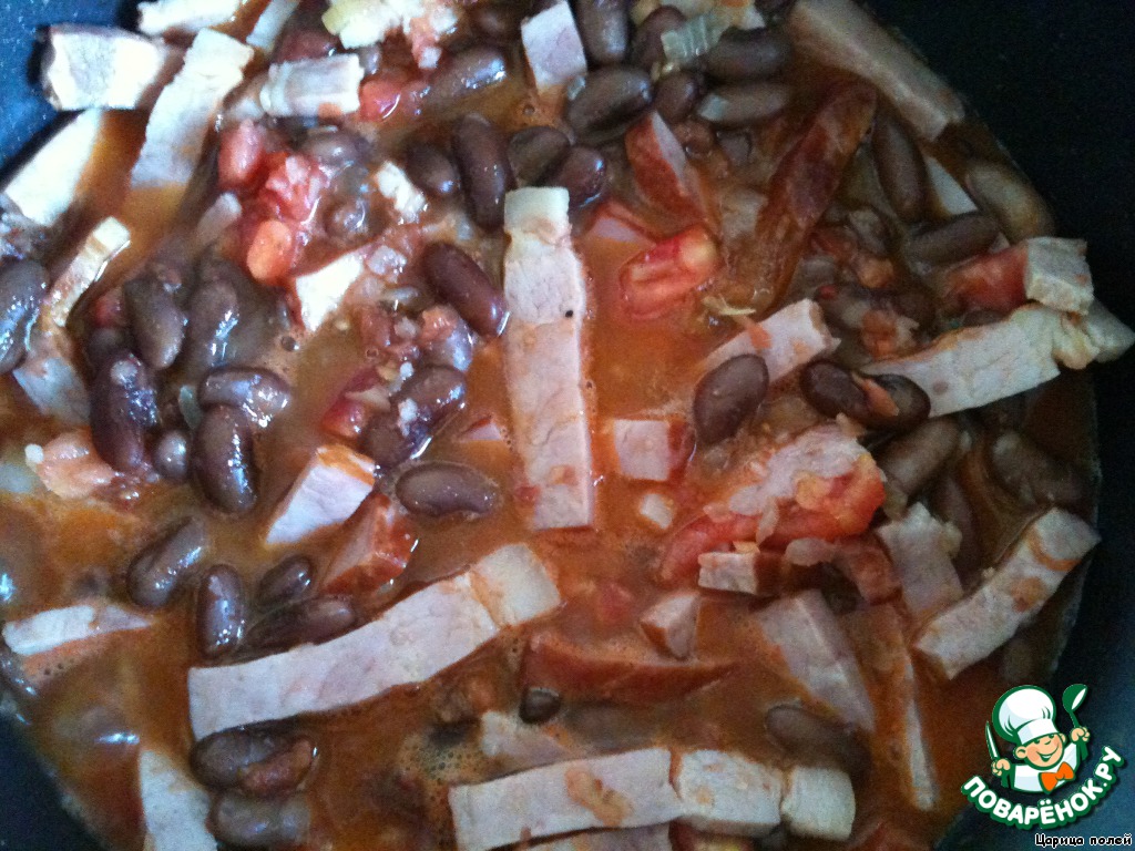 | Очень люблю фасоль за то, что она впитывает вкус и аромат тех продуктов, с которыми готовится. В этом блюде вы почувствуете насыщенный аромат копчeного бекона, вкус спелых помидоров, и всe это в сочетании с нежной фасолью. Попробуйте, не пожалеете! |