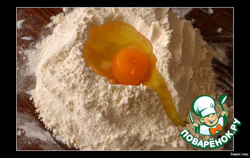 В муку всыпать соль, влить оливковое масло и вбить яйцо. На 400 грамм муки это будут 3 яйца, 1 столовая ложка масла и немножко соли. Затем влить чернила каракатицы.