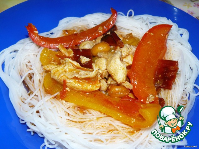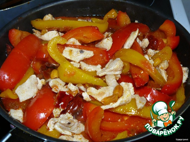 Сладкий перец с куриным филе и острой приправой с арахисом