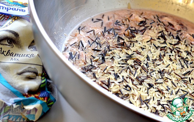 Всыпать промытый, но СЫРОЙ Акватика Микс. Посолить, размешать и дать постоять 15 минут пока вы будете заниматься черевой.