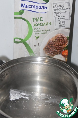 Первым делом поставить вариться рис. Я выбрала жасмин, потому как он быстро варится. всего 15 минут и у меня готов вкусный ужин.