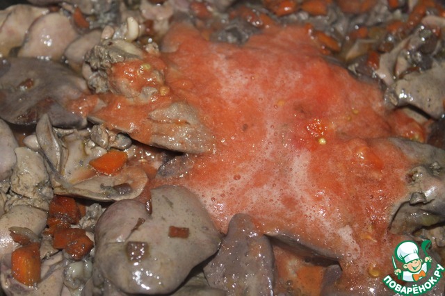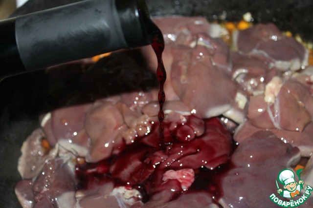 Нежная куриная печень, тушенная в красном вине