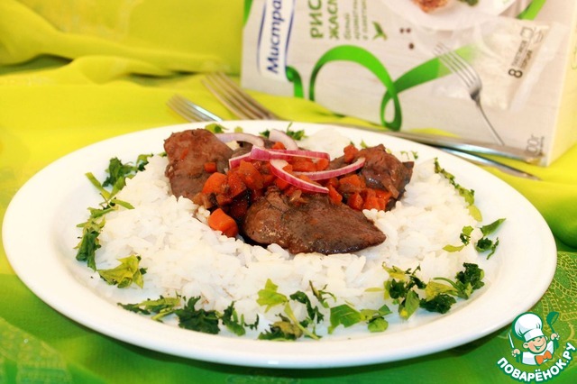 | Предлагаю попробовать очень быстрое, ну просто моментальное блюдо. Печень получилась нежная, ароматная, сочная. Мой муж не очень любит субпродукты, но в этот раз он попросил добавки. Значит все получилось. А приготовилась печень меньше, чем за 15 минут, даже рис на гарнир еще не успел свариться. |