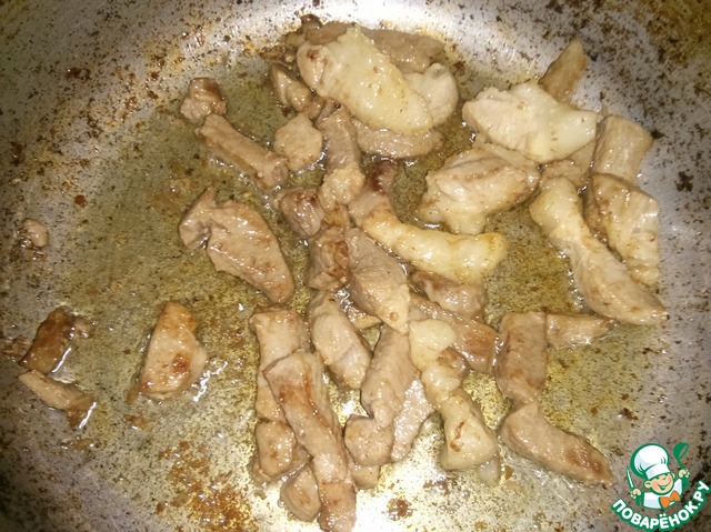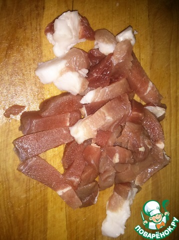 Пробежали два часа, фасоль набухла, нарезаем мясо небольшими кусочками.