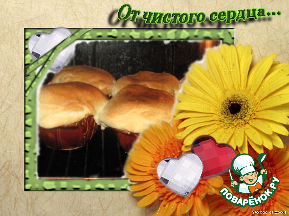 Накрываем (по желанию) тестом, приготовленным по этому рецепту http://www.povarenok.ru/recipes/show/18169/ или просто крышечками, и отправляем в духовку на 200 градусов до готовности.