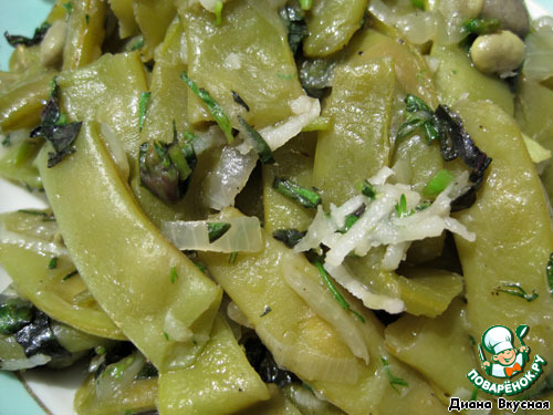 Засыпаем отварной фасолью, поджариваем несколько минут.