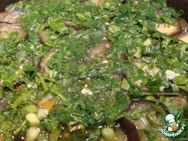 Когда овощи приготовятся, выключаем огонь и посыпаем зеленью.