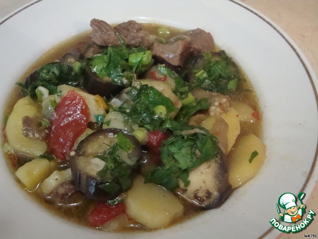 | Вкусное и полезное сочетание овощей и мяса. А пикантность этому блюду придают баклажанчики. В сезон баклажанов, это одно из самых любимых моих блюд. |