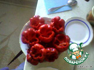 | Лежал перец на балконе... "Что бы с ним сделать?"... Покопалась в рецептах поварят, но все-таки того, что хотела, не нашла. Может быть, плохо искала, и такой рецепт уже есть? Тогда я прошу прощение. |