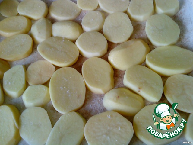 выкладываем на деко картошку. солим (кто хочет можно поперчить)