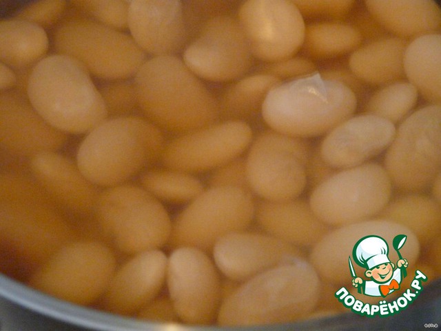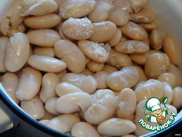 Фасоль замочить на ночь. Налить воды (два объема воды на объем фасоли), добавить гвоздичку, пучок трав. Варить без кипения 2 часа пока фасоль станем мягкой(я 3 часа варила, фасоль наверно такая попалась).